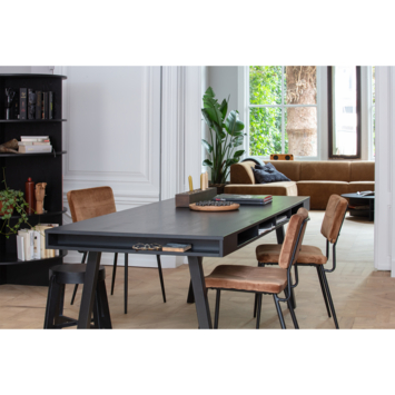 Urenlang comfortabel tafelen is geen probleem met eetkamerstoel Kaat uit de WOOOD collectie. Kaat eetkamerstoel is een comfortabele, trendy stoel bekleed met een stevige fluweel stof (100% polyester) in de kleur karamel met een metalen onderstel in zwarte poedercoating. In de rugleuning en de zitting is een stoere vakkenverdeling gestikt. De stoel heeft een goed zitcomfort door de zithoogte van 46 cm, de zitbreedte van 44 cm en de zitdiepte van 43 cm. De combinatie van de antracietgrijze stof geeft een mooi geheel met het zwart afgewerkte buisframe. Hierdoor krijgt Kaat een trendy uitstraling en past daardoor in meerdere woonstijlen. Deze stoel is ook leverbaar in de kleuren zwart en antraciet. Wil je een speels effect aan de eettafel creëren? Combineer dan de kleuren onderling met elkaar.