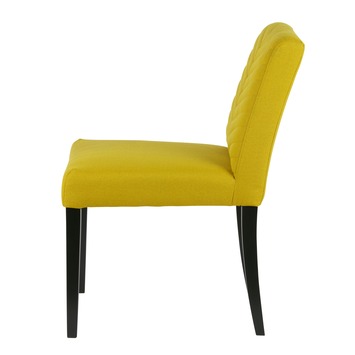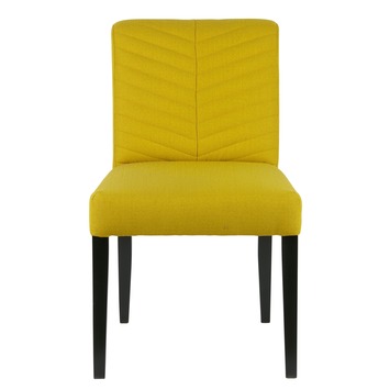 De WOOOD eetkamerstoel Keet in het oker geel is een echte basic stoel, zit heerlijk en is bekleed met een stevige stof (100% polyester). De gestoffeerde rugleuning heeft een zgn. visgraatpatroon stiksel en past in iedere woonstijl. Met zijn comfortabele zitting en rugleuning en zwart gelakte strak vormgegeven houten poten is deze stoel helemaal van nu. Wil je eens wat anders, dan kun je deze stoel Keet in de kleur oker geel combineren met deze zelfde stoel in de kleur antraciet grijs. Dit zorgt voor een opvallend en speels effect in je interieur. Combineer deze eetkamerstoelen Keet met de eettafels van het merk WOOOD in het rechthoekig of rond.