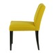 - Polyester stoffering in oker geel en zwart gelakte houten poten