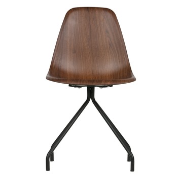 De stoere WOOOD eetkamerstoel Kim met een PU hard kunststof zitting in de kleur bruin met houtstructuur, heeft een opvallend eigentijds uiterlijk door de kuipvormige zitting. Dit is niet alleen fraai van uiterlijk, maar de stoel zit ook heerlijk. De PU kuip is makkelijk te reinigen met een licht vochtige doek. Deze stoere eetkamerstoel Kim past in heel veel woonstijlen. Met zijn fraaie vormgeving en zwart gelakt metalen poten is deze stoel helemaal van nu. Deze stoel wordt per 2 stuks geleverd en het enige wat je moet monteren zijn de metalen poten aan de kuipzitting. Combineer deze eetkamerstoelen Jet met de eettafels van het merk WOOOD in het rechthoekig of rond met houten poten of zwart gelakt metalen onderstel.
