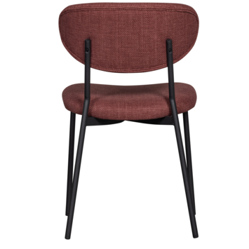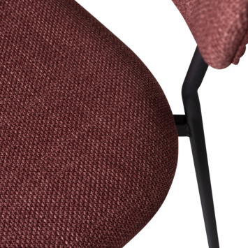 Deze eetkamerstoel kenmerkt zich als stijlvol, maar toch eenvoudig. De Kjeld komt uit de collectie van het Nederlandse interieurmerk WOOOD. De stoel heeft een slank metalen onderstel in een zwarte kleur. De zitting is bekleed met een dikke rouge geweven stof, deze is gemaakt van 100% polyester met kleurschakeringen. De Kjeld is ook beschikbaar als barstoel.
