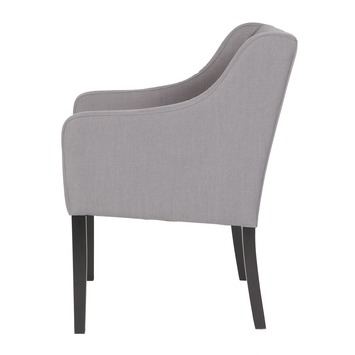 - 90% polyester stoffering in grijs gecombineerd met 10% linnen met zwart gelakte beukenhouten poten
