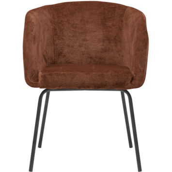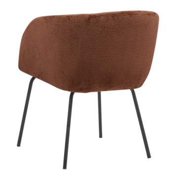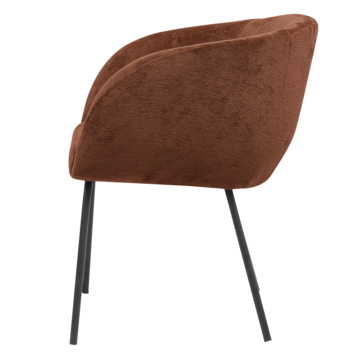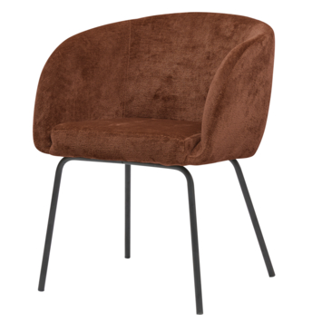 De Noelle eetkamerstoel heeft een slank metalen onderstel met een matzwarte poedercoating. De zitting is bekleed in een structuur velvet met een trendvolle lichtbruine kleur, Martindale 100.000. Dat maakt de eetkamerstoel zeer geschikt voor intensief woongebruik.