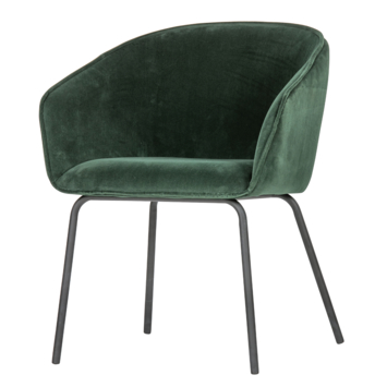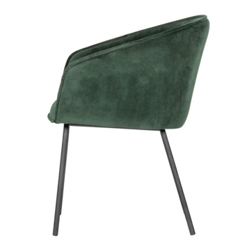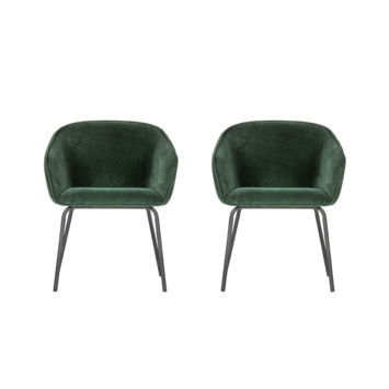 Een fluwelen stoel heeft een zachte zitting, dus je kunt er urenlang op zitten zonder pijn. eetkamerstoel Sien van het merk WOOOD past perfect in de werkkamer, woonkamer of in de eetkamer. Doordat de stoel een stijlvol en chique uiterlijk heeft, creëert deze een warme sfeer in het interieur. Een musthave voor in huis dus! De stoel heeft een warmgroene kleur met zwarte, stalen poten. De stoel is 75 centimeter hoog, 62 centimeter lang en 63 centimeter breed. De zitbreedte van deze stoel is 45 centimeter. Ook heeft de stoel armleuningen. Dit product wordt verkocht als set van 2. Kortom, de Sien eetkamerstoel van WOOOD is een stijlvolle stoel met een prachtig aanzicht.