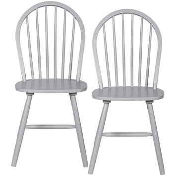 De WOOOD eetkamerstoel Spencer 2 stuks is prima geschikt om gezellig te tafelen met het hele gezin, borrelen met wat vrienden of rustig alleen werken of studeren. Door zijn stoere design is de stoel Spencer ook wanneer deze niet wordt gebruikt, mooi om te zien. En hip is de stoel Spencer zeker, mede dankzij de spijlen in de rugleuning. De stoelen zijn gemaakt van rubberhout en grijs gespoten. De stoelen worden geleverd in een set van 2 stuks en het enige dat je moet monteren zijn de poten. Deze stoelen zijn prima te combineren met de massief eiken tafels Largo die in diverse afmetingen verkrijgbaar zijn en de ronde massief eiken tafel Rhonda met een doorsnede van 129 cm.