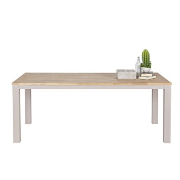 WOOOD eettafel Capo 200x90x78 cm is een massief houten eettafel. De tafel is basic, robuust en geeft een warme uitstraling. Deze tafel Capo heeft een massief grenen onderregel met vierkante stevige rechte massief grenen blokpoten van 8x8 cm en een massief eiken tafelblad dikte van 26 mm die op een unieke manier is bezaagd. Door een nieuwe manier van bezagen, dwars over de houtnerf, krijgt het tafelblad een unieke uitstraling, waardoor er een doorleefd uiterlijk ontstaat. Door toepassing van metalen hoekplaten aan de onderkant van het tafelblad is deze tafel zeer stabiel in gebruik. De hoogte van de tafel bedraagt 78 cm. De afstand tussen vloer en onderkant tafelregel bedraagt 68,5 cm (belangrijk bij armleunstoelen). Massief eiken brengt sfeer in huis, het met 2 componenten transparante matte lak behandelde eiken van deze tafel bestaat uit stroken verlijmd eikenhout (vingerlas). Het onderstel is van massief grenen en is afgelakt in de eigentijdse kleur taupe. Dit artikel wordt als bouwpakket geleverd en is makkelijk te monteren met behulp van de bijgeleverde montage instructie. De eettafel Capo is ook verkrijgbaar in de afmeting: 180x85 cm. Een fraaie combinatie met deze tafel Capo zijn de eetkamerstoelen West met metalen frame en kunststof gevlochten zitting in bruin/beige.
