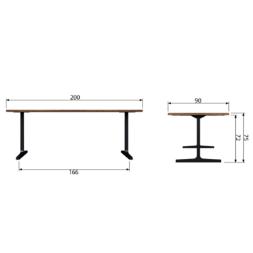 Woood eettafel Jimmy T-poot notenhout met zwart onderstel