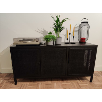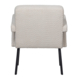 De zitbreedte tussen de armleuningen bedraagt 56 cm en de zitdiepte is 50 cm. De zithoogte is aan de voorzijde 49 cm en loopt iets af voor een relaxte zit. De rugleuning is vanaf de zitting gemeten 43 cm hoog en heeft een breedte van 57 cm. De metalen poten zijn afgewerkt met een matzwarte poedercoating en hebben een hoogte van 35 cm en zijn 2 cm in het rond