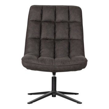 Deze comfortabele fauteuil Dirkje uit de collectie van het Nederlandse merk WOOOD is uitgevoerd in een zwarte PU lederlook. Het zwart metalen onderstel heeft een stabiele vierpoot en draaifunctie. Dirkje heeft een zachte zit en comfortabele zitkuil. De hoge rugleuning biedt stabiliteit in de rug wat zorgt voor extra zitcomfort.