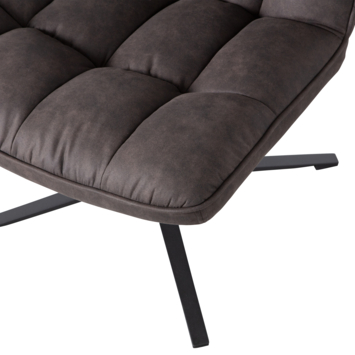 Deze draai fauteuil zit heerlijk. We hebben hem in de woonkamer staan bij de salontafel/banken. In combinatie met de okki poef kan je je benen ook relaxt omhoog leggen. Op de beschrijving staat zwart maar het is eerder donker bruin.