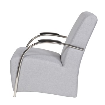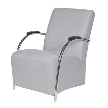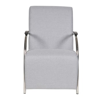 De trendy fauteuil Halifax heeft een fijne comfortabele zit. De fauteuil Halifax is gestoffeerd met een stevige stoere polyester stof in de kleur grijs gecombineerd met verchroomd metalen armleggers. Op deze armleggers zitten zwarte kunststof armleuningen. De afmetingen van Halifax zijn (bxhxd): 85x90x56 cm en de zithoogte is 46 cm. De fauteuil is helemaal van de tijd van nu. De fauteuil Halifax is ook in de kleur rood verkrijgbaar. Onderhoud: regelmatig stofzuigen (met de vleug mee) met een schone borstel. Bij eventuele vlekken droogdeppen met een schone theedoek of tissue. Beslist niet wrijven! Meeste vloeistoffen zijn te verwijderen met lauw water en eventueel nadrogen met een föhn. 3 jaar fabrieksgarantie conform het CBW, eerste jaar volledige vergoeding van de reparatie.