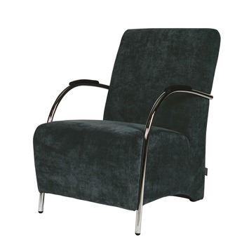 De WOOOD fauteuil Halifax in de kleur staalblauw heeft een fijne comfortabele zit. De fauteuil Halifax is gestoffeerd met een stevige 92% PES/8% PA ribcord stof in de kleur staalblauw gecombineerd met verchroomd metalen armleggers. Op deze armleggers zitten zwarte kunststof armleuningen.De fauteuil is helemaal van de tijd van nu. De fauteuil Halifax is ook in de kleur antraciet, vergrijsd groen en poederblauw verkrijgbaar.