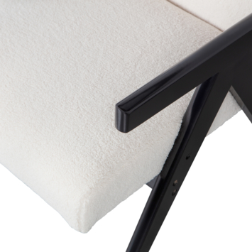 Deze charmante lounge fauteuil, uit de collectie van het Nederlandse interieurlabel WOOOD, is een ware eyecather. De Lowie fauteuil heeft een sterk contrast met zijn superzachte teddy bekleding en het matzwarte, lijnenspel van het frame. De afgeronde randen geven Lowie een vriendelijke uitstraling en een geborgen zit. De stof is zeer kleurvast en voelt zacht aan door de lange, pluizige lussen. De pluizigheid wordt eenvoudig hersteld middels ronddraaiende handbewegingen tussen de hoge lussen