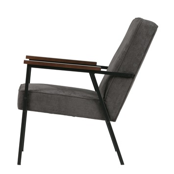 WOOOD fauteuil Sally ribcord antraciet grijs