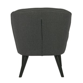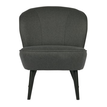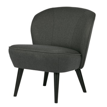 De WOOOD fauteuil Sara is een prachtige stoel met zwart gelakte beukenhouten poten. Het is een stoel met een comfortabele zit. De stoel is gestoffeerd in de kleur donker grijs met een 100% polyester stof.