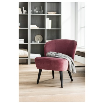 De WOOOD fauteuil Sara is een prachtige stoel met zwart gelakte berkenhouten poten. Het is een stoel met een comfortabele zit. De stoel is gestoffeerd in de kleur roze met een 100% polyester fluweel stof. Bij deze fauteuil Sara zijn ook bijpassende poefjes, bank en een hocker apart verkrijgbaar. De fauteuil Sara is verkrijgbaar in verschillende kleuren.