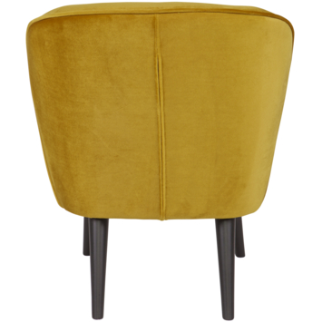 De WOOOD fauteuil Sara is een prachtige stoel met zwart gelakte berkenhouten poten. Het is een stoel met een comfortabele zit. De stoel is gestoffeerd in de kleur okergeel met een 100% polyester fluweel stof. Bij deze fauteuil Sara zijn ook bijpassende poefjes, bank en een hocker apart verkrijgbaar. De fauteuil Sara is verkrijgbaar in verschillende kleuren.