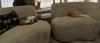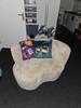 - Organisch bankje van zachte stof in zandkleur