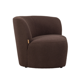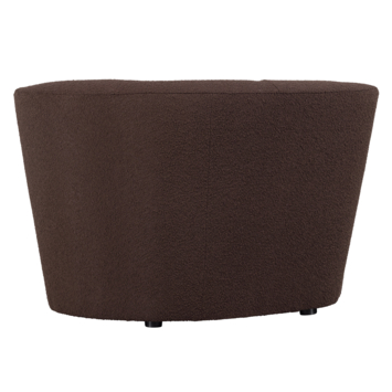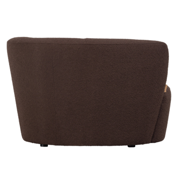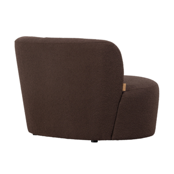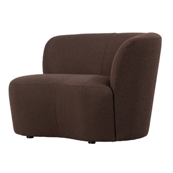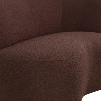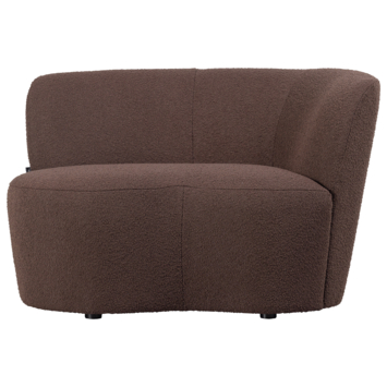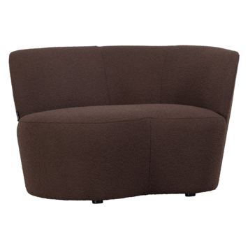 Vriendelijk, organisch bankje. Bouclé stof in een bruine kleur (100% polyester). Rechter en linker variant beschikbaar. Afm.(hxbxd) 73x112x80cm.