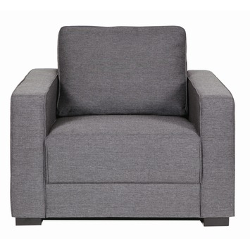 De fauteuil Tijmen is een mooie aanvulling bij de hoekbank Tijmen met het loungegedeelte. De fauteuil heeft een zelfde uitstraling als de bank Tijmen en is voorzien van een zelfde stevige stof (100% polyester) in de kleur grijs. Door de basic look van deze fauteuil Tijmen past hij bij iedere woonstijl. De afmetingen zijn(bxhxd): 95x82x86 cm. De fauteuil is voorzien van een vaste rugkussen en heeft een stevig en uitstekend zitcomfort. De hoogte van de rugleuning is 82 cm, de zitdiepte is 57 cm en de zithoogte is 44 cm. Van deze fauteuil Tijmen in de kleur grijs is ook een antracietgrijze uitvoering verkrijgbaar. Onderhoud: regelmatig stofzuigen (met de vleug mee) met een schone borstel. Bij eventuele vlekken droogdeppen met een schone theedoek of tissue. Beslist niet wrijven! Meeste vloeistoffen zijn te verwijderen met lauw water en eventueel nadrogen met een föhn. 3 jaar fabrieksgarantie conform het CBW, eerste jaar volledige vergoeding van de reparatie. Bij deze fauteuil is ook een hoekbank Tijmen te leveren in dezelfde polyester stof en kleur grijs.