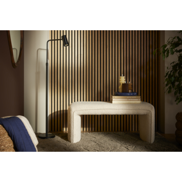 - Bekleed met zachte beige bouclé stof