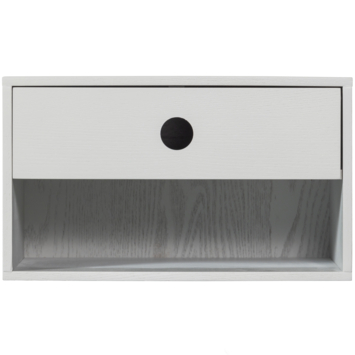 Met een hoogte van 20 centimeter, een breedte van 34 en een diepte van 30 centimeter biedt Nancy precies genoeg ruimte. De montage is eenvoudig uit te voeren dankzij het bijgeleverde ophangsysteem met schuine ophanglat, schroeven en pluggen. Eenmaal bevestigd hangt het kastje stevig en veilig aan de wand, met een draagkracht van maximaal 5 kilo per compartiment.