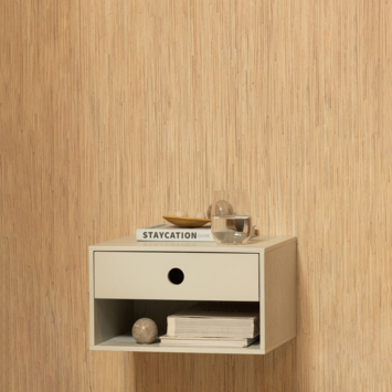 De WOOOD hangend nachtkastje Nancy in mist grijs hout is een subtiele toevoeging aan de slaapkamer die rust, eenvoud en functionaliteit perfect weet te combineren. Dankzij het zwevende ontwerp krijgt je slaapruimte een moderne, luchtige uitstraling, terwijl het compacte formaat ervoor zorgt dat het nachtkastje zelfs in kleinere kamers perfect tot zijn recht komt.