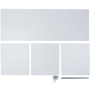- Pakket van 3 spaanplaat legplanken en één spaanplaat tussenschot bekleedt met witte folie.