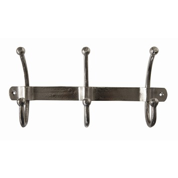 Industriële metalen kapstok met 3 haken. Te bevestigen met twee schroeven. De kapstokafmetingen zijn (hxbxd) 20x43x9 cm.