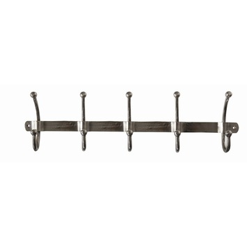 Industriële metalen kapstok met 5 haken. Te bevestigen met twee schroeven. De kapstokafmetingen zijn (hxbxd) 20x82x9 cm.