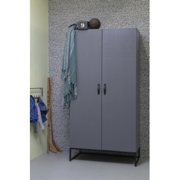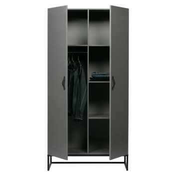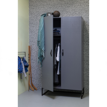 De WOOOD kledingkast 2-deurs Morris 2 leemgrijs grenenhout 195 x 100 x 53 cm is een stoere en praktische kast die jouw interieur een robuust karakter geeft. De leemgrijze kleur in combinatie met zwartlederen handgrepen en een zwart frame zorgt voor een eigentijdse look die perfect past in verschillende woonstijlen. Dankzij de royale afmetingen is de kast ideaal voor het overzichtelijk opbergen van kleding en accessoires.