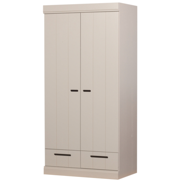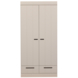 De WOOOD kledingkast Connect dust grenenhout is een robuuste, praktische opbergoplossing met een moderne uitstraling. Met zijn strakke vormgeving, subtiele sleufgrepen en stoere strokendeuren past deze kast moeiteloos in zowel een industriële als landelijke slaapkamer.