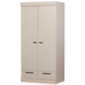 Deze ruime kast is vervaardigd uit massief, FSC-gecertificeerd grenenhout en afgewerkt in een zachte dust tint die rust brengt in je interieur. De binnenzijde is voorzien van onderhoudsvriendelijke gelamineerde legplanken. De kast beschikt standaard over een brede legplank en een ruim hanggedeelte, zodat je zowel kleding als linnengoed netjes kunt opbergen. Onderin bevindt zich een handige lade voor kleinere items.