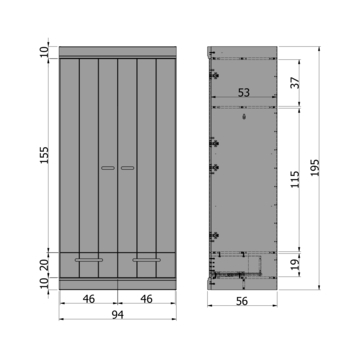 Deze grijze kast CONNECT is een nieuwe aanvulling op de bestaande serie CONNECT, welke bestaat uit een ladekast en 3 basiskasten: Een 2-drs kast, een 2-drs kast met lades en een 3-drs kast met lades. De kasten zijn zo gemaakt dat ze vlak tegen elkaar aan kunnen worden geplaatst. De kasten kunnen perfect naast elkaar geplaatst worden en op die manier kun je de kast zo breed maken als je zelf wilt. De 2-drs en 3-drs kasten zijn leverbaar met twee typen deuren: een strokendeur met sleuven als handgreep of de stoere lockerdeur met wit metalen grepen. De CONNECT kasten zijn verkrijgbaar met het standaard hang- leg interieur (1 roede + 1 legplank) of met een aanvullend interieur, dat uit een tussenschot en 3 gedeelde legplanken bestaat.