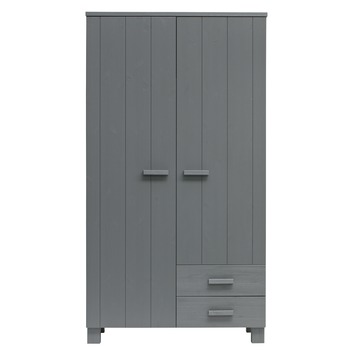 WOOOD kledingkast Dennis 2 deurs + laden staal grijs 202x111x55cm
