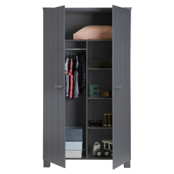 WOOOD kledingkast Dennis grenen staalgrijs 202x111x55 cm