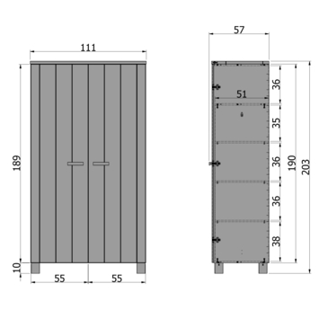 Voorzien van vier legplanken en een roede H 202 x B 111 x D 55 cm