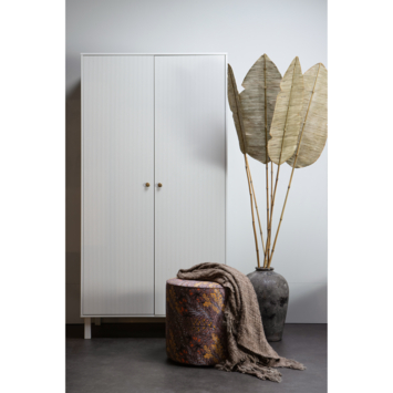De WOOOD kledingkast Madu wolkengrijs grenenhout 194,5 x 99,7 x 53,1 cm is een moderne en stijlvolle kast die perfect past in de slaapkamer. De wolkengrijze kleur en de goudkleurige knoppen geven de kast een elegante uitstraling met een stoer accent. Dankzij het praktische formaat en de slimme indeling heb je altijd genoeg ruimte om je kleding netjes op te bergen.