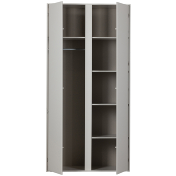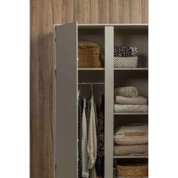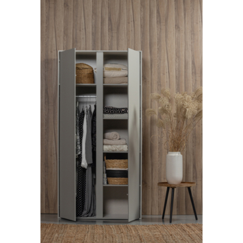 De Maevy garderobekast, uit de collectie van het Nederlandse interieurmerk WOOOD, is een royale opberger voor jouw garderobe. De garderobekast biedt meer dan genoeg hang- en legruimte voor al jouw kledingstukken. De wolken grijze kleur laat zich perfect combineren met jouw favoriete kleurenpallet, kies jij voor een Scandinavische inrichting of voor een botanische vibe? Maevy is de perfecte keuze om jouw slaapkamer of inloopkast te verrijken met opbergruimte!