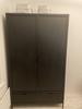 Deze garderobekast heeft 2 metalen deuren, elk met een afmeting van 149 cm hoog en 51,5 cm breed en 2 laden, elk 22 cm hoog en 51,5 cm breed. Een zee aan opbergruimte! Ronja staat op zwart metalen pootjes met een hoogte van 12 cm.