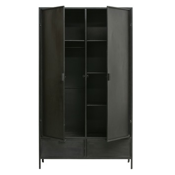 Met de stoere 2-deurs garderobekast Ronja van WOOOD haal je een unieke en eigentijdse kast in huis! De kast Ronja is gemaakt van zwart metaal, heeft een industriële en vintage uitstraling en past perfect in het interieur van nu.