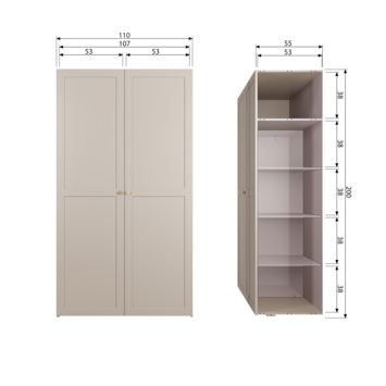 WOOOD kledingkast Silko beige 210x101x55 cm