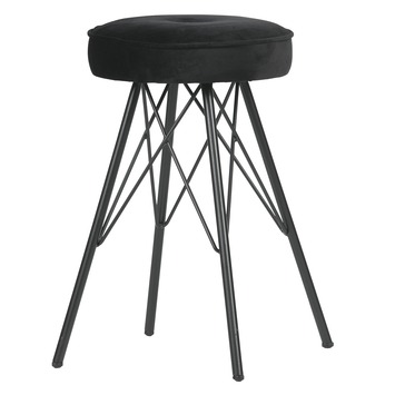 De WOOOD Bella kruk is een eigentijdse en elegante kruk. De Bella kruk is een mooie toevoeging aan elke ruimte. De top (9 cm) van de Bella kruk is bekleed met een mooie velvet stof in de kleur zwart. De zwart metalen poten hebben een hoogte van 44 cm.