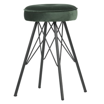De WOOOD Bella kruk is een eigentijdse en elegante kruk. De Bella kruk is een mooie toevoeging aan elke ruimte. De top (9 cm) van de Bella kruk is bekleed met een mooie velvet stof in de kleur warm groen. De zwart metalen poten hebben een hoogte van 44 cm.