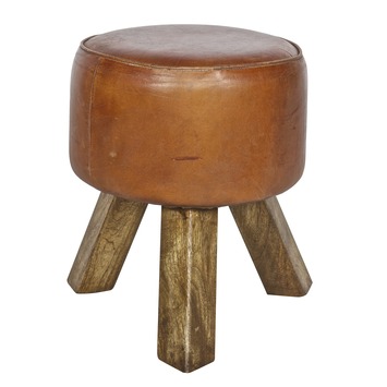WOOOD kruk bok geitenleder met houten poten is een kruk vervaardigd uit geitenleer met houten poten en is geïnspireerd op de bok uit de gymles. Het stoere karakter van dit krukje past in ieder huis. De woonkamer, werkkamer of de tienerkamer, overal is plaats voor dit leuke krukje. Het krukje heeft een hoogte van 44 cm en een doorsnede van 35 cm.