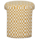 Met zijn vrolijke ruitdessin en compacte formaat is de WOOOD kruk Charlie in geel een echte sfeermaker in huis. Dit veelzijdige krukje combineert een vriendelijke vormgeving met een speels patroon, waardoor het een verrassende blikvanger is in ieder interieur. Of je hem nu gebruikt als extra zitplek, voetenbankje of decoratieve bijzetter – Charlie voelt zich overal thuis. De opvallende bekleding in onze Chess-stof geeft het ontwerp karakter. Deze geweven chenille stof is vervaardigd uit 100% polyester en heeft een gelijkmatig blokpatroon dat zorgt voor een speelse, maar stijlvolle uitstraling. De stof is bestand tegen intensief gebruik – ideaal voor dagelijks comfort. Met een hoogte van 47 cm en een compact oppervlak van 45 bij 45 cm past Charlie moeiteloos in kleine ruimtes. De stevige pootconstructie, met een hoogte van 38 cm en een draaggewicht tot 100 kg, zorgt voor stabiliteit. De zitting van 9 cm dik biedt bovendien aangenaam comfort. Onderhoud is eenvoudig: bij een vlek dep je deze voorzichtig met een schone, lichtvochtige doek – zonder te wrijven. Indien nodig kan de bekleding gewassen worden op 30 graden of gestoomd, mits deze afneembaar is. De Charlie kruk in ruit dessin geel wordt volledig gemonteerd geleverd. Voor het beschermen van harde vloeren is het aan te raden om viltglijders onder de poten te plaatsen. Een subtiele eyecatcher met karakter – perfect voor wie functionaliteit wil combineren met uitgesproken stijl.