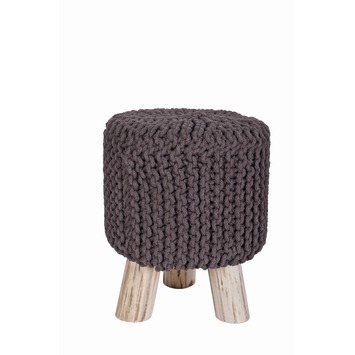 Kruk Lynn met gebreide zitting in het grijs met robuuste houten poten is een sieraad in huis. De zithoogte is 45 cm met een doorsnede van 35 cm. Deze kruk is ook verkrijgbaar in de kleur ecru en als poef met een doorsnede van 65 cm en een zithoogte van 30 cm.