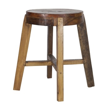 WOOOD kruk Inca is gemaakt van gerecycled hout en is een stevige ronde houten kruk op vier poten. Past in ieder interieur, modern, landelijk of klassiek. De kruk is gemaakt van gebruikt hout en heeft daardoor een used-look. De kruk heeft daardoor een vintage uitstraling. Hierdoor is ieder exemplaar uniek. Afmeting (hxbxd) 46x49x49 cm.