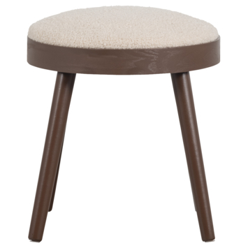 Elegant en speels, dat is deze kruk Laurie van het Nederlandse merk WOOOD. Laurie is bekleed met een zachte bouclé stof in een lichte off white. De zitting is omringd door een frame van bruin houtfineer. Door de combinatie van de trendvolle bouclé zitting met de houten accenten maken van kruk Laurie een charmante bijzetter.