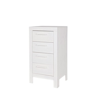 De WOOOD ladekast Bronx 85x45x39 cm heeft 4 laden. Een handige kast die in iedere ruimte toegepast kan worden. De kast is van massief grenen, gespoten in de kleur wit en de ladekast heeft een geborstelde afwerking. Bij het borstelen van grenen wordt de houtnerf sterk geaccentueerd en ontstaat een doorleefd oppervlak. De afmetingen van de kast zijn (hxbxd)85x45x39 cm. Dit artikel wordt als bouwpakket geleverd en is makkelijk te monteren met behulp van de bijgeleverde montage instructie. De ladekast Bronx is ook verkrijgbaar in de kleur taupe.